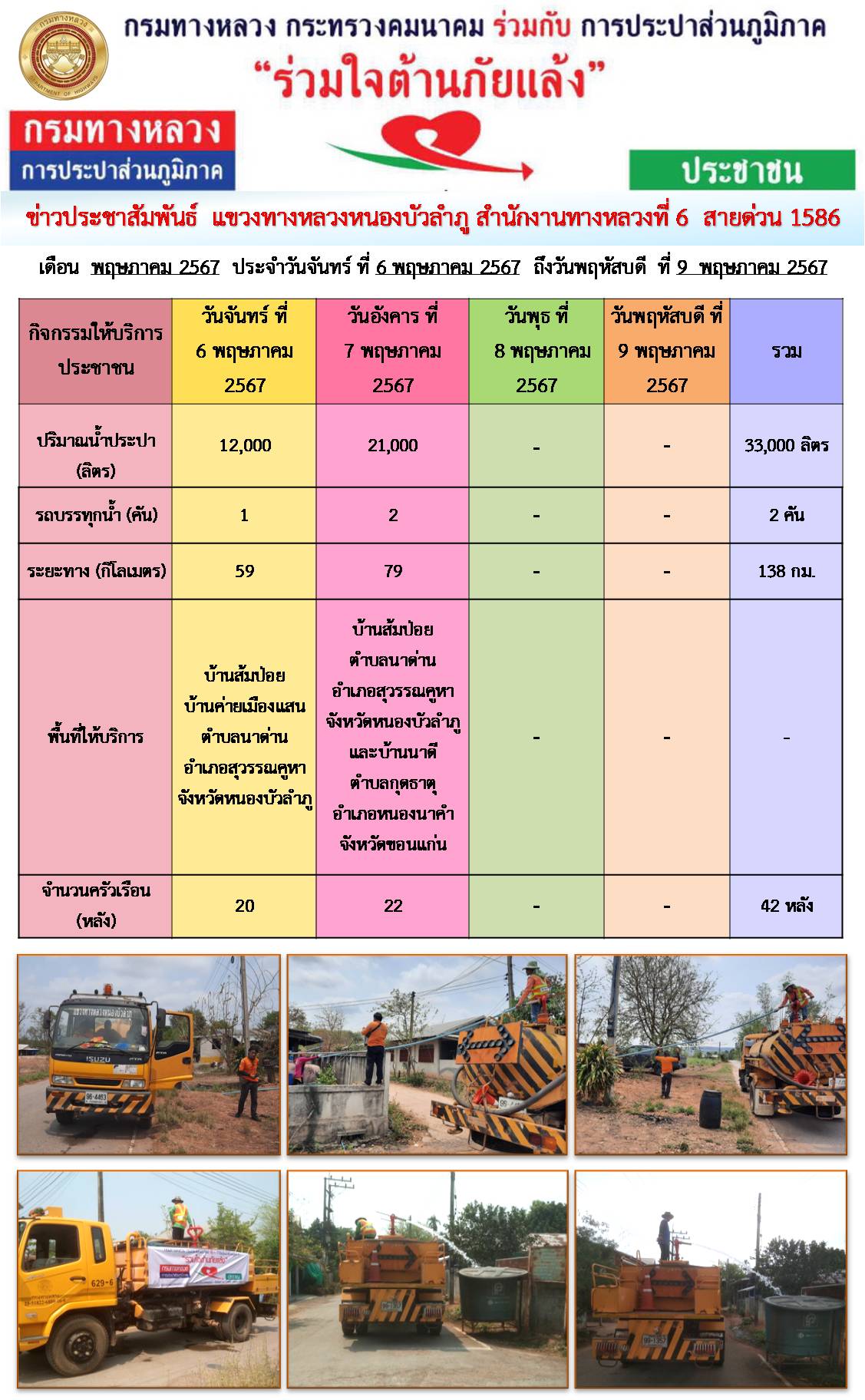 แขวงทางหลวงหนองบัวลำภู ร่วมใจต้านภัยแล้ง ปี 2567