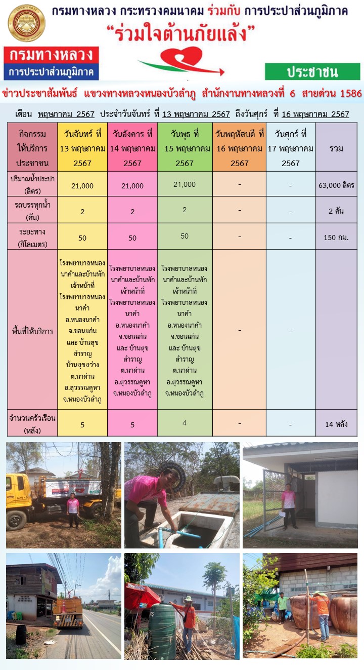 ข้อมูลข่าว : แขวงทางหลวงหนองบัวลำภู ร่วมใจต้านภัยแล้ง ปี 2567