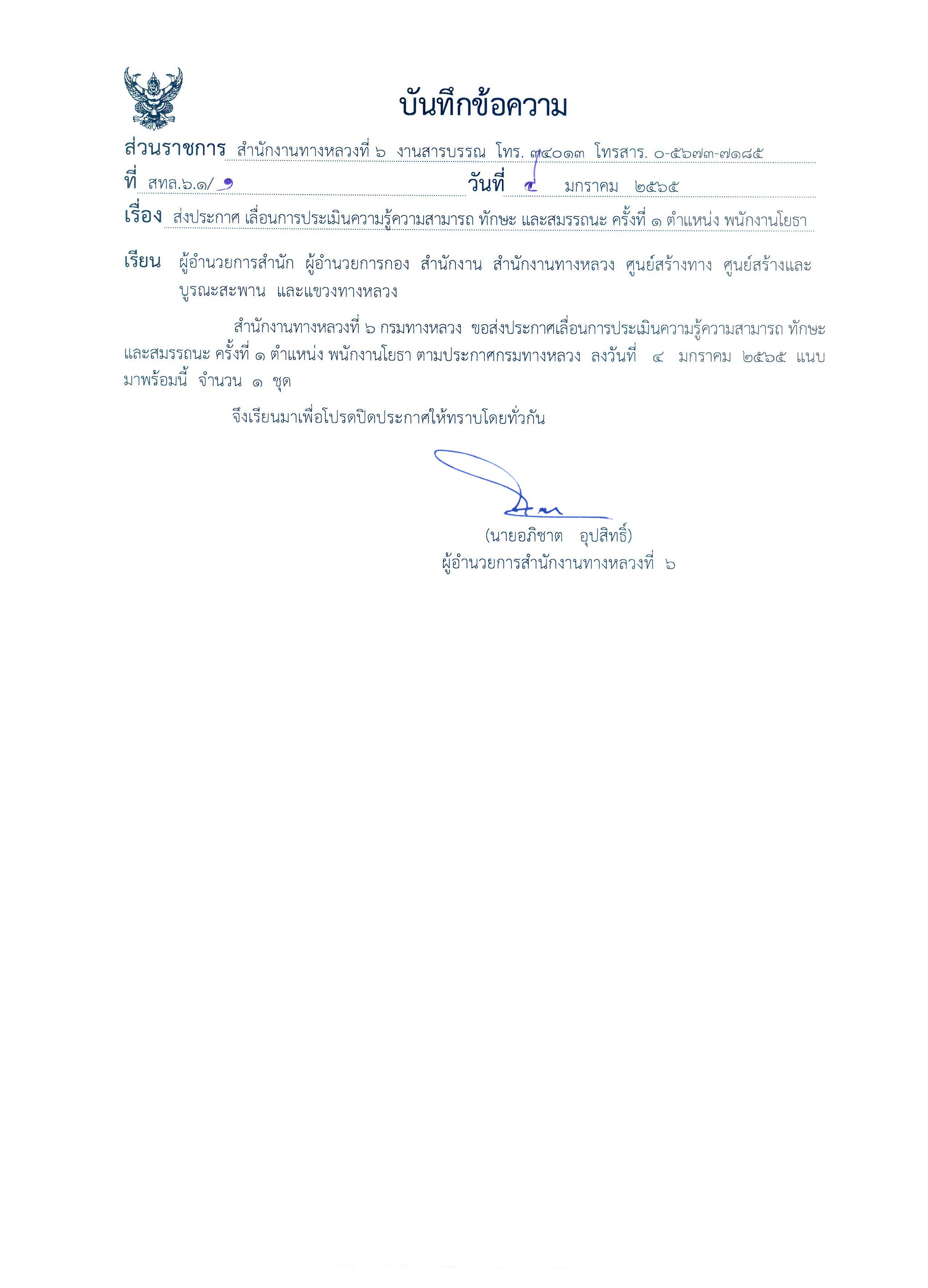 เลื่อนการประเมินความรู้ความสามารถ ทักษะ และสมรรถนะ ครั้งที่ 1 ตำแหน่ง พนักงานโยธา