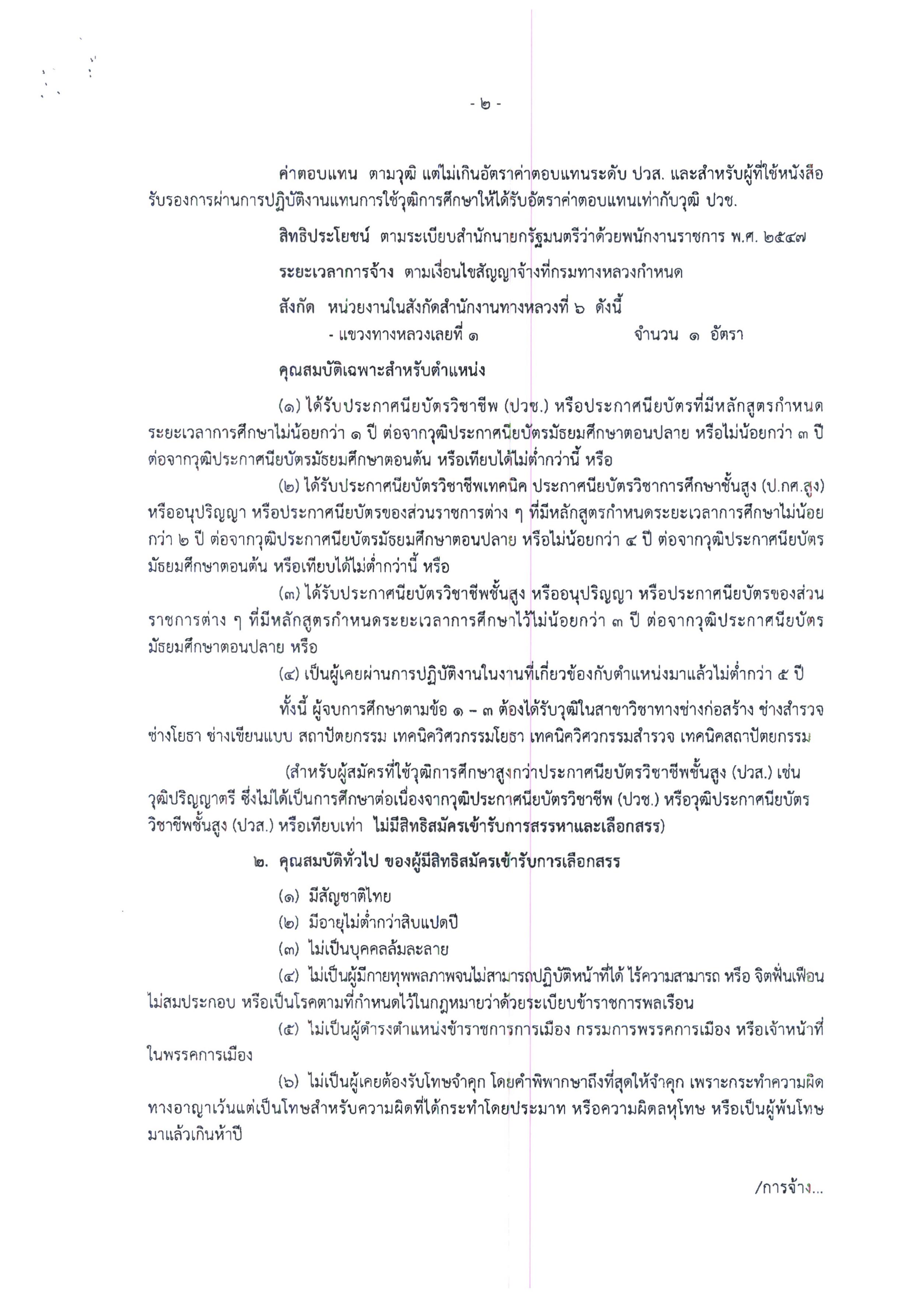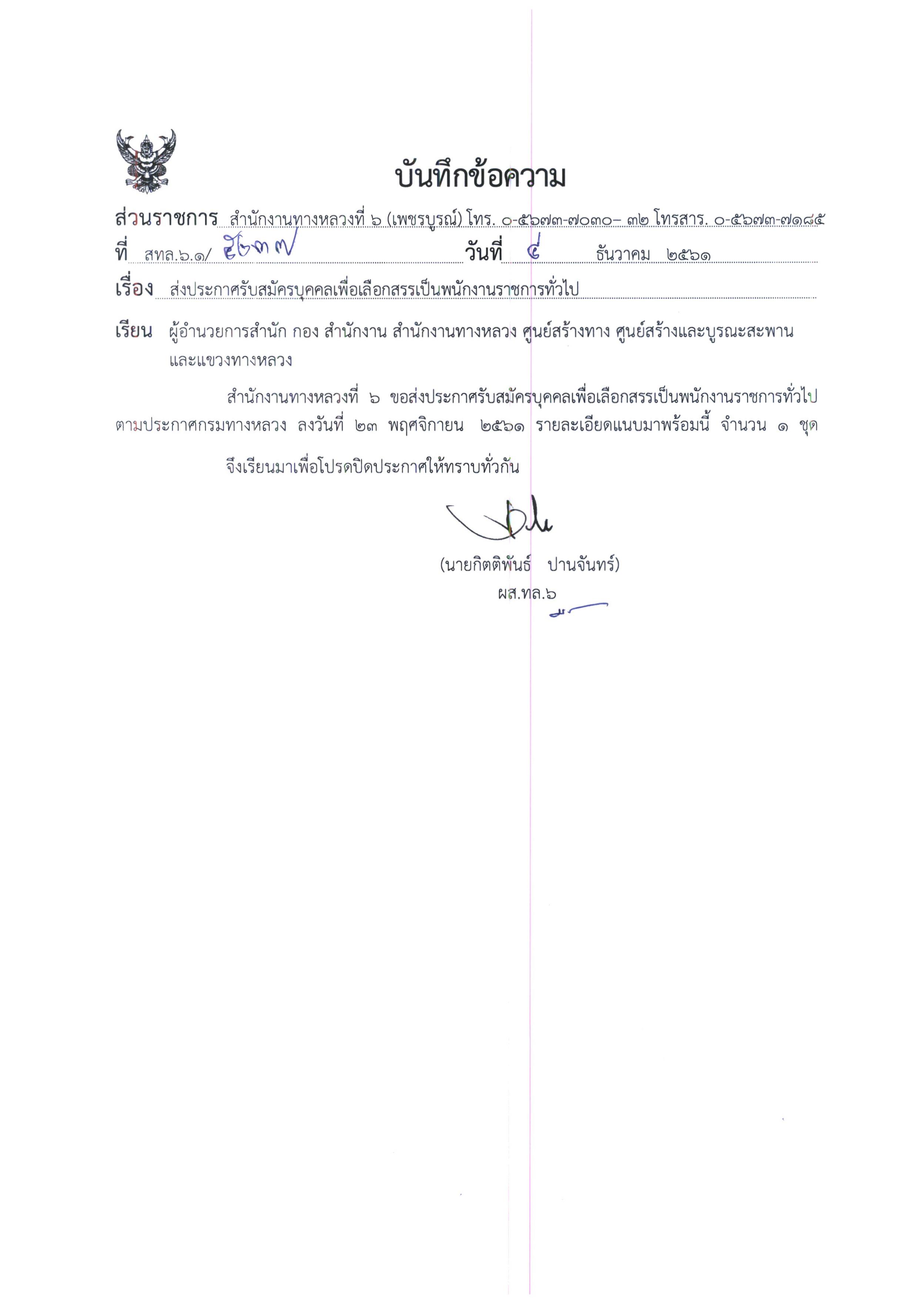 สำนักงานทางหลวงที่ 6 (เพชรบูรณ์) ประกาศรับสมัครบุคคลเพื่อเลือกสรรเป็นพนักงานราชการทั่วไป ตำแหน่งพนักงานโยธา ตั้งแต่วันที่ 17 ธ.ค. - 21 ธ.ค. 2561